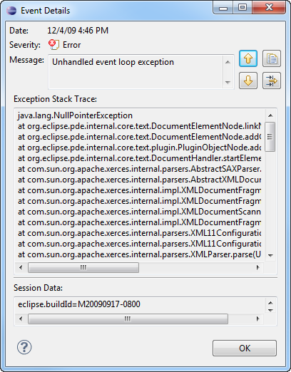 To see a stack trace of an error, double-click an item in the list, which shows the Event Details dialog.