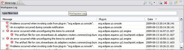 The Error Log view is provided as a standard part of Eclipse, and is not a StreamBase-specific view. Nevertheless, StreamBase® Studio takes advantage of the Error Log view.