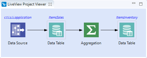 The LiveView Perspective's Project Viewer presents a visual overview of a LiveView project, clarifying the relationships between the various components and providing easy access to the configuration information underlying each piece. The Viewer helps you navigate through and understand the components that make up a LiveView project.