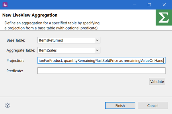 Use the Validate button to test your projection and optional predicate against the Base Table. Click Finish when the validation test passes with no errors.