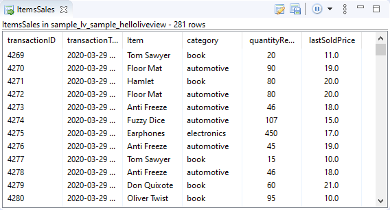 The Query View displays the query results for the table selected in the LiveView Tables view.