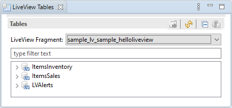 The LiveView Perspective includes the LiveView Tables view for viewing tables in connected LiveView fragments.