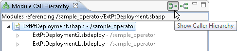 The following images show the two views for ExtPtDeployment.sbapp, one of the sample modules in the operator sample group. The callee view is on top, followed by the caller view.
