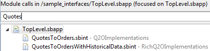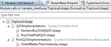 By default, the Module Call Hierarchy view shows a tree view of the interfaces and modules called by the currently active