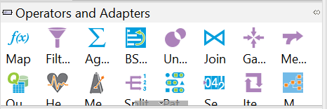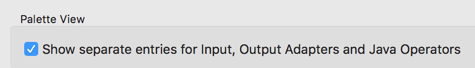 You can optionally split the Adapters, Java Operators icon into four individual icons. To do this, open Studio Preferences, and its > panel. Select the Show separate entries for Input, Output, and Java Operators check box: