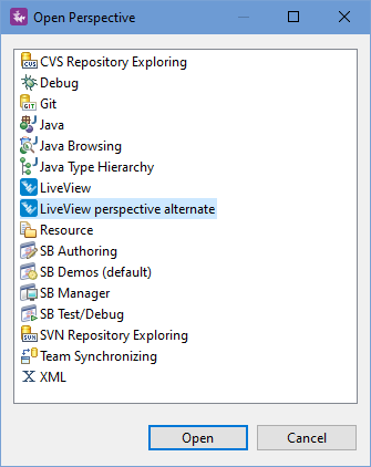You can create one or more custom perspectives based on your display preferences. For example, in the default SB Authoring perspective, you may prefer to not display certain views so that more space is available for the EventFlow Editor's canvas.
