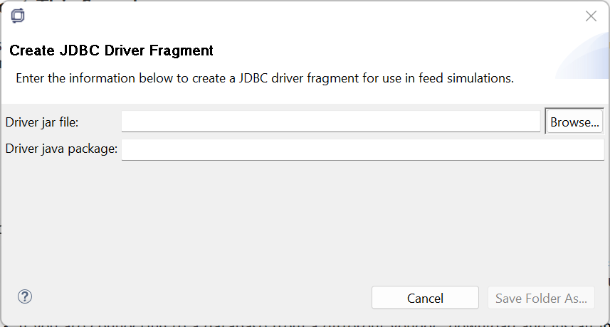 The Create JDBC Driver Fragment dialog opens.