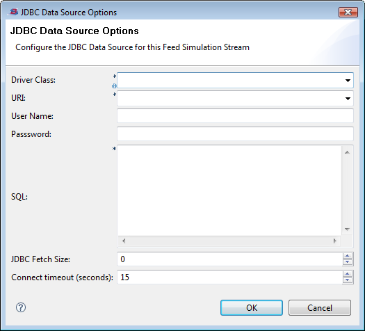 This dialog represents the entirety of configuration available when using a JDBC data source for a feed simulation. That is,