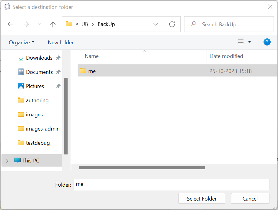 Navigate to the desired destination folder. Click Select Folder to save the fragment.