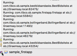 When the module is running, you can use Manual Input or Feed Simulation views of the SB Test/Debug perspective to interact with the running EventFlow fragment deployed to the node. The fragment also now responds to input from the sbc command or other StreamBase clients from the command line.
