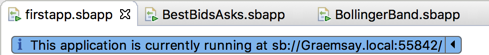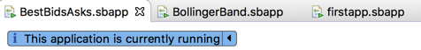 A currently running message is shown in the information bar at the top of the Editor canvas of the running fragment. If the running fragment is the only instance of that EventFlow module, the message includes the full StreamBase URI.
