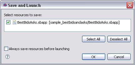 If the specified module has any unsaved changes, StreamBase may display the Save and Launch dialog.