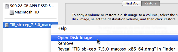 As an alternative to opening the StreamBase DMG file in the OS X Disk Utility described above, you can use the following alternative procedure: