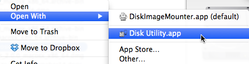 From the Open With menu, select Disk Utility.app.