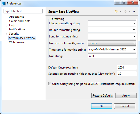 option in LiveView Desktop to see recent updates.) Set row limits low enough that client processing capacity is not exceeded, and define query predicates to be restrictive enough that the row limit is never or rarely reached.- Changing the LiveView Desktop Default Query Row Limit
