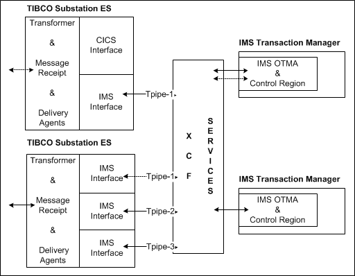 - The IMS control region and Substation ES can each execute in the same or an adjacent LPAR images as long as XCF communicates with both LPARs.