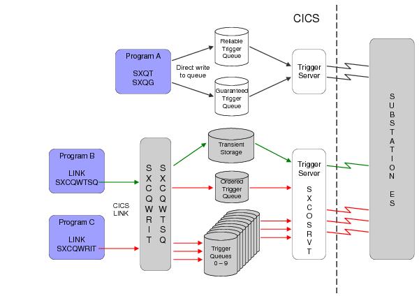 - SXCQWRIT adds data to TDQ and SXCQWTSQ adds data to TSQ known to Substation ES.