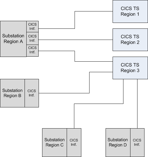 One or more CICS interface instances can operate and coexist concurrently within one Substation ES region. Each CICS interface is restricted to communicating with only one CICS region at a time.