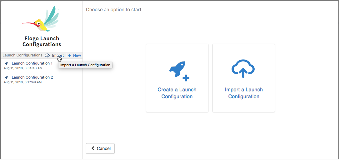 Note: The Launch Configuration name is not preserved, so the imported Launch Configuration is given a default name of "Launch Configuration x" where x stands for the next number in the series of existing Launch Configurations. For example, if you have two existing Launch Configurations in the flow, the imported Launch Configuration is named Launch Configuration 3. You have the option to edit the name to make it more meaningful.