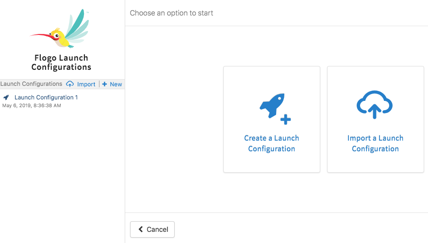 Create a Launch Configuration or use an existing Launch Configuration that you had exported from another flow by clicking