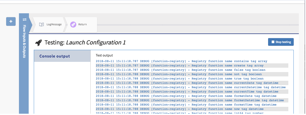 The Flow Tester opens with the mapper for the Launch Configuration displayed. You can click on an input element and change its value and resume testing by repeating steps 4 onwards above.
