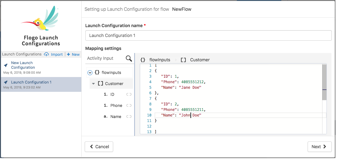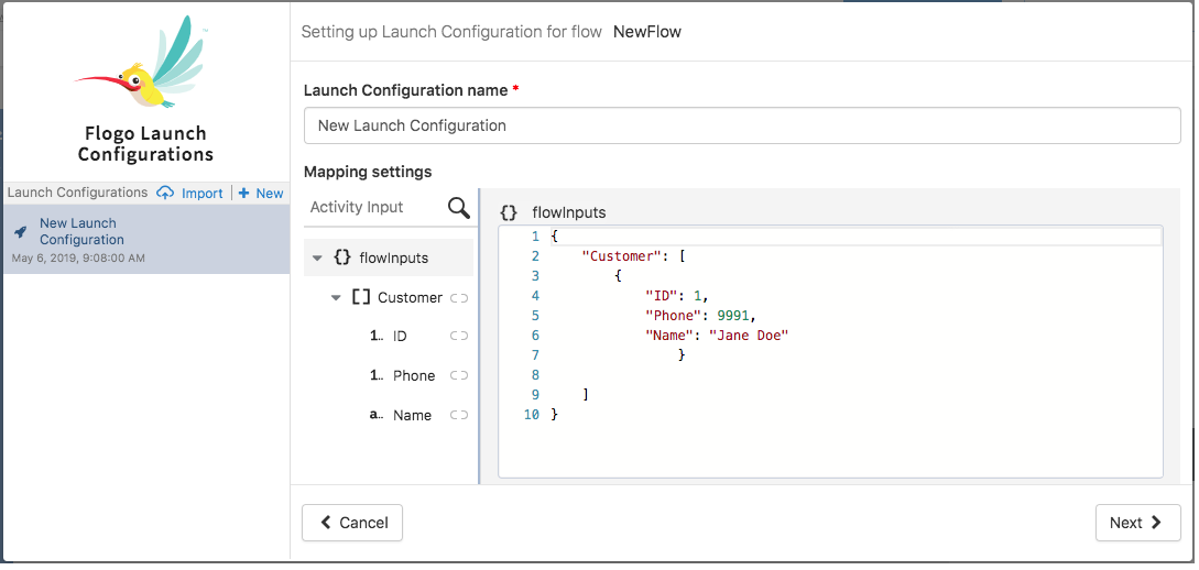 Only the validation errors related to invalid JSON structure will prevent you from proceeding with testing. Errors pertaining to missing values for required elements serve as a warning, but allow you to proceed with your testing. This is because it is possible that an element (variable) that is marked as a required field in the schema may not have been used in the activity at the time of testing. In that case, the variable is not needed for the flow to run. But in the production environment, your app will not run successfully until you provide input values for all elements marked as required in your schema.