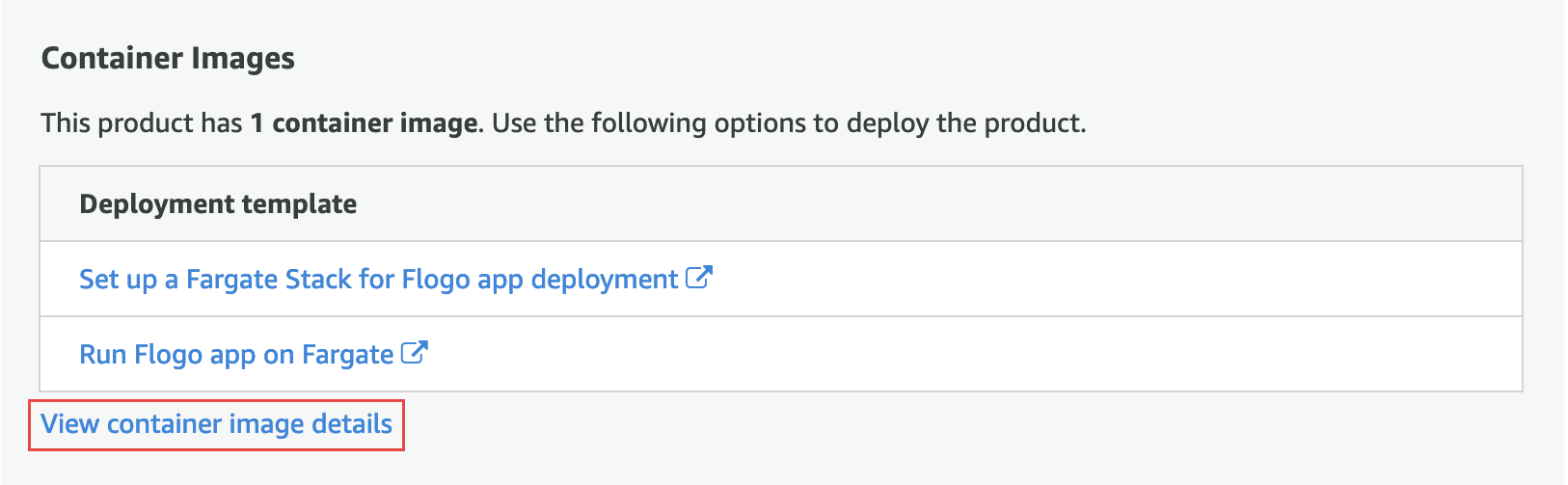 - Click View container image details as shown in the following screen. Follow the instructions to authenticate and pull the Docker image.