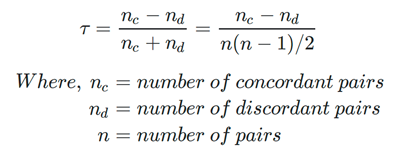 - The interpretation of Kendall’s tau in terms of the probabilities of observing the agreeable (concordant) and non-agreeable (discordant) pairs is very direct.