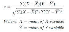 The Pearson (product-moment) correlation coefficient is a measure of the linear relationship between two features. It is the ratio of the covariance of x and y to the product of their standard deviations. It is often denoted with the letter r and called Pearson’s r.