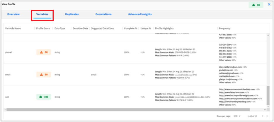 This report provides a detailed view of each variable included in the profile.