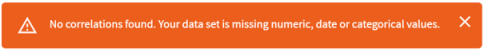 Note: Correlations can be generated for variables with numeric, date or categorical values. If the selected variables do not meet this criteria, an error message displays in the upper-right corner of the screen, as shown in the following image.