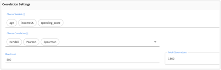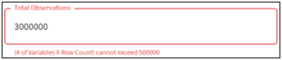 Note: The max number of observations that can be uploaded for correlations is 500,000. Adjust the number of variables and the row count to reduce the total number of observations if it exceeds the max limit.