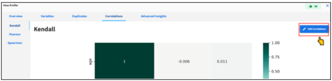 - Click Edit Correlations to change the correlation settings and to rerun the correlation analysis, as shown in the following image.