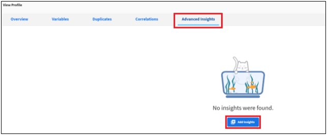 Click the Advanced Insights tab in the View Profile dialog, and then click Add Insights as shown in the following image.