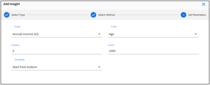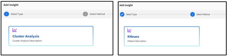 - From the Add Insight dialog, click Cluster Analysis and select the KMeans method, as shown in the following image.