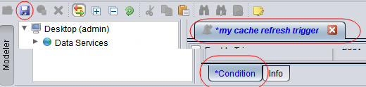 リソースが編集または変更されると、Studioツールバーの[Save(保存)]ボタンが有効になり、タブエディターの名前がアスタリスク付きの青いイタリック体で表示され、変更が行われたエディタータブがアスタリスク付きで青く表示されます。