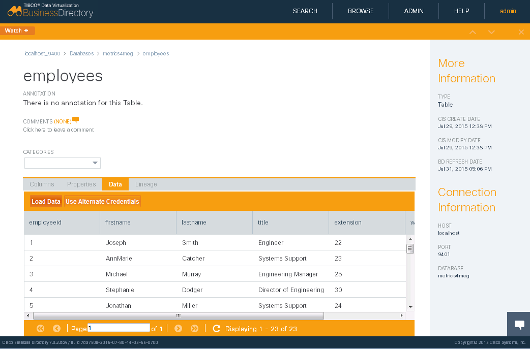 4. Optionally, to view data you might need to Use Alternate Credentials to authenticate as a user with rights to view the data.