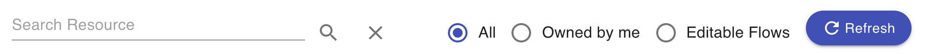 The resources listed in the Data Catalog can be filtered to show all resources or just the ones created by the user.