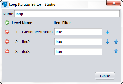 5. Click Close to save your definitions and close the Loop Iterator Editor.