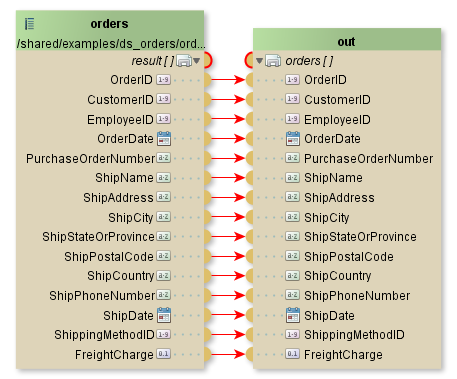 Auto map is a quick way to assign table or view metadata from one operation to another in your transformation. The auto map mode compares the names of the parameters and maps the values that match each other.