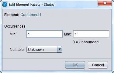 Element facets are the details defined for each of the elements being defined for the XQuery transformation code. They are primarily responsible for setting minimum and maximum occurrences, and indicating if the value can be NULL or not.