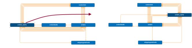Discovery automatically arranges the relationship and dependency lines when you make changes.