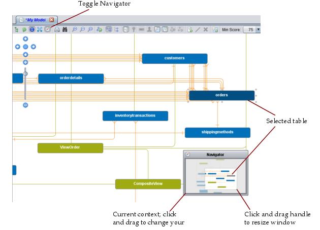 The Navigator gives you a small view of the entire model and shows your current context within that model.