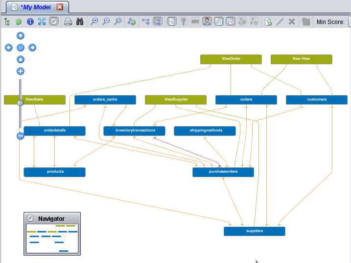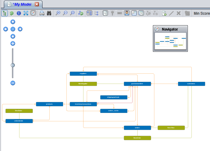 You can zoom in and out of the model diagram to change your view using buttons in the tool bar or the zoom controls in the model diagram. You can also move mouse track wheel to increase or decrease the zoom.