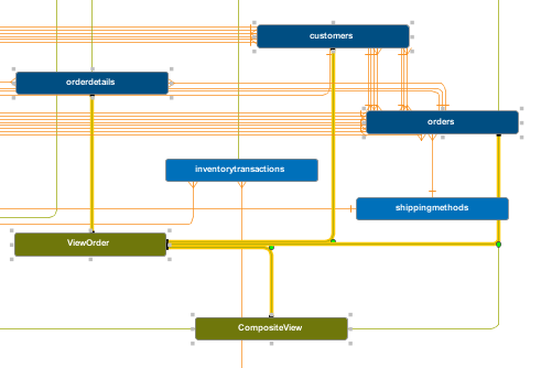 • Select multiple objects—Ctrl+click or drag a box around to select multiple tables/views and relationship/dependency lines.