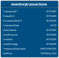 Show All Columns | Displays all columns for the selected table as in this example: An asterisk indicates that this is a primary key column. A number (#) indicates any kind of relationship, including discovered or foreign key. A plus (+) indicates that this is a denormalized column. An @ symbol indicates a data domain relationship. |