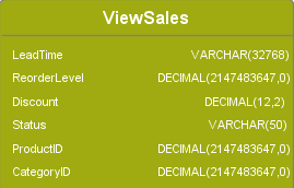 Views are displayed in green and are connected by dashed lines to the resources on which they depend. From the Model diagram, you can display a view’s columns as well as access details about the table.