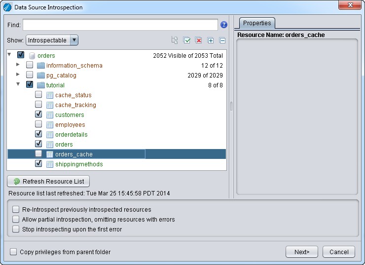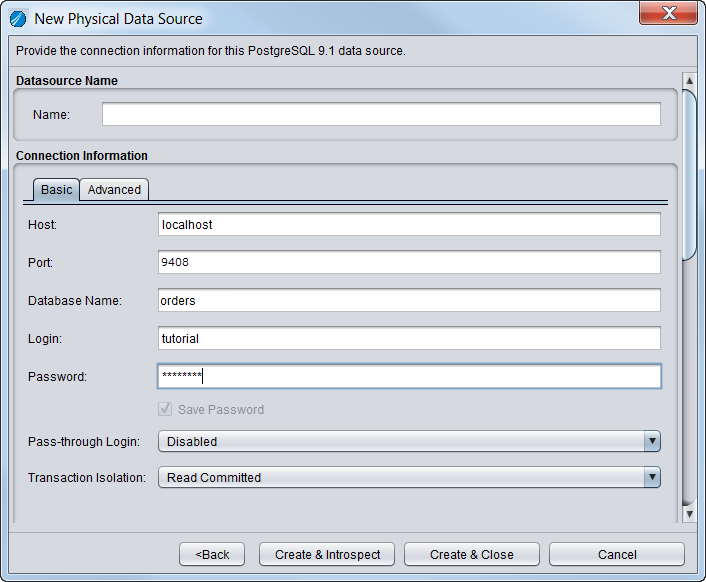 Name | ds_orders | Type a unique name for the data source. When the process of adding this data source is complete, the name ds_orders will be displayed in the resource tree. ds_orders is the TDV representation of the orders database. |