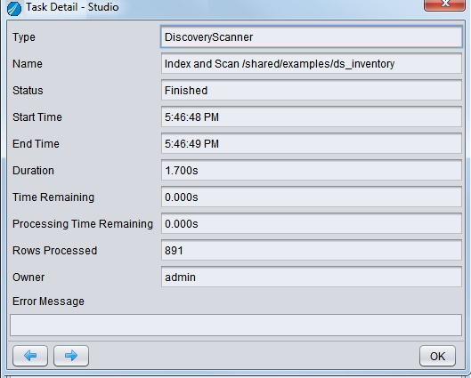 Discovery displays a Tasks Detail panel with more information about that task as in this example.