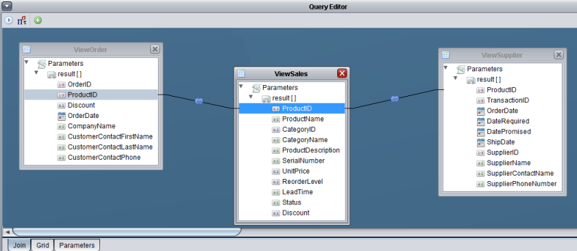 6. Select and connect each of the ProductID columns. For example, your Query Editor should look like the following: